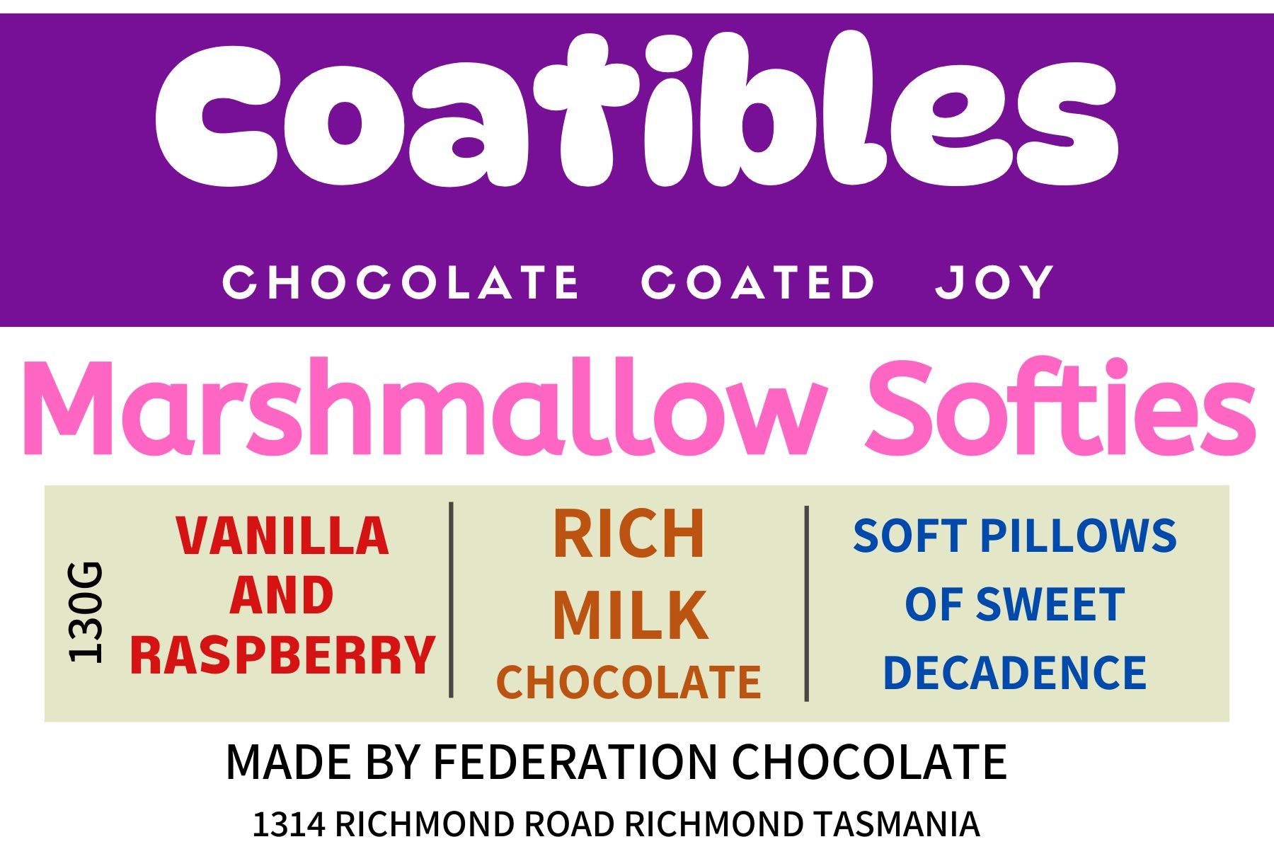 Drift away on a cloud of pure indulgence ourCoatibles Marshmallow softies- a delightful marriage of soft, fluffy marshmallows in two irresistible flavors, smothered in rich milk chocolate.
